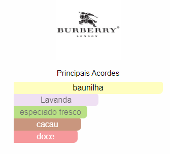 As notas de topo são: Baunilha, Lavanda, Cacau e Gengibre.