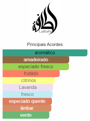 As notas de fundo são: Fava Tonka, Madeira de Âmbar, Cedro e Vetiver.
