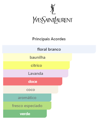 As notas de coração são: Flor de Laranjeira, Lavanda, Coco, Lírio e Palmeira.