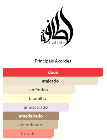 As notas de fundo são: Baunilha, Almíscar e Sândalo.