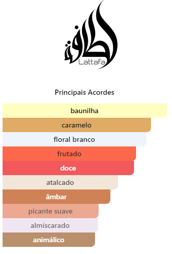 As notas de fundo são: Baunilha, Caramelo, Âmbar e Almíscar.